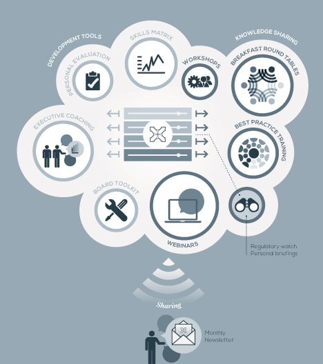 Parmi ceux-ci, une farde accompagnée de fiches dédiées aux différentes entités de la société (Risk, Governance, Substance et Compliance).
