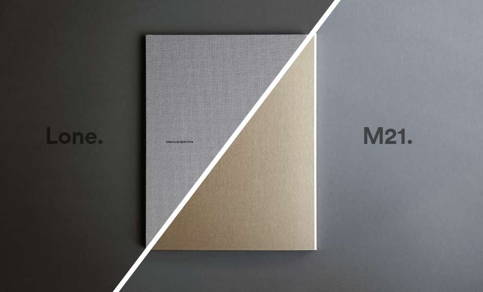 Les brochures M21 et Lone, réalisées pour Koba, sont de véritables objets de vente et de mise en valeur des projets immobiliers qu’elles présentent.