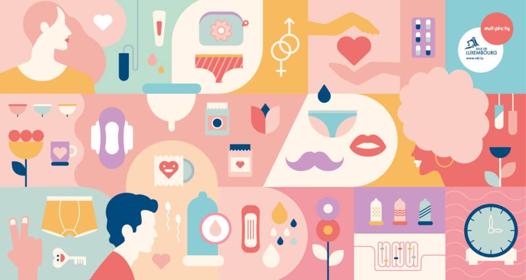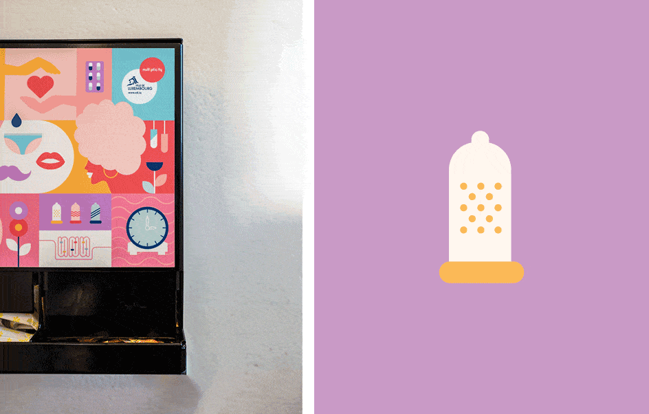Pour habiller ces boîtes, nous avons opté pour un design ludique où les préservatifs, tampons et autres serviettes hygiéniques s’illustrent à travers un univers poétique.