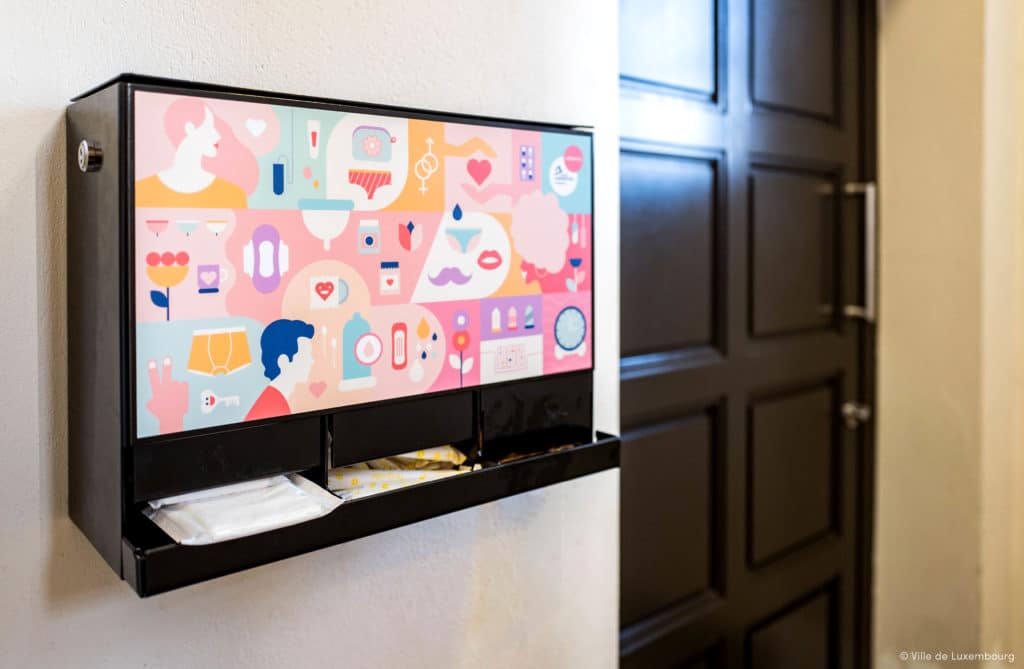 En ce début d’année 2022, 5 distributeurs gratuits de produits hygiéniques ont été mis en place dans la capitale luxembourgeoise.