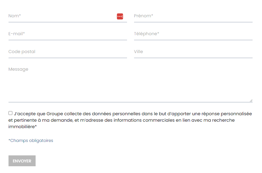 Par exemple, pour le projet Hépich de notre client, groupe Schroeder, nous avons créé cette page de formulaire de contact en tant que page de destination dans le but de convertir les internautes en prospect.