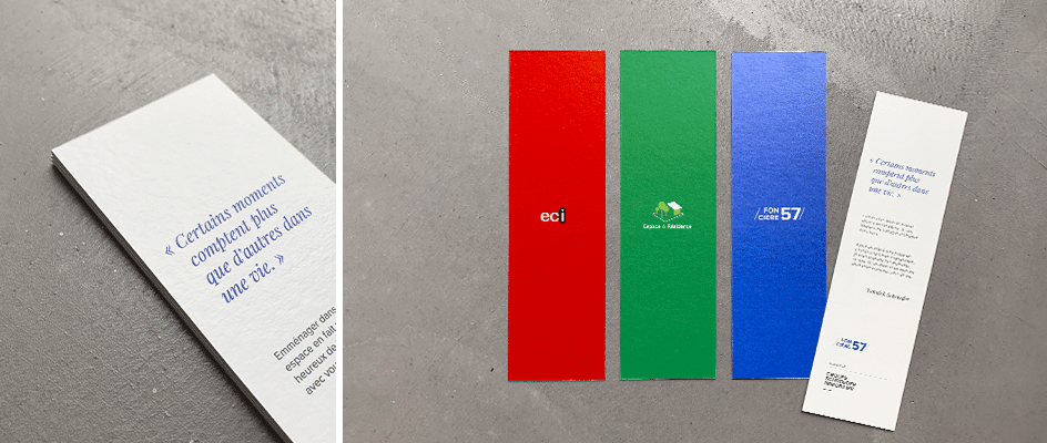 Nous avons donc imaginé un emballage à la fois corporate et personnalisable pour chaque entité : une perforation circulaire laisse apparaître une carte individuelle.