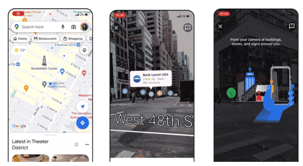 Live View va également évoluer en suivant cet objectif d’immersion. La fonctionnalité permet déjà de se rendre à une destination en suivant une direction tracée grâce à la réalité augmentée. Prochainement, Search with Live View permettra de pointer sa caméra sur un environnement pour afficher l’image réelle des informations en AR comme ce que l’on trouve sur Google Maps (activités, horaires, …).