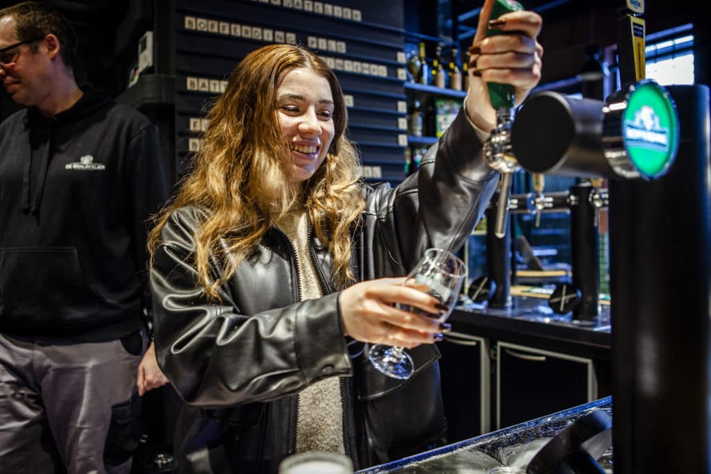 Après un cours théorique sur le débit de la bière, l’utilisation et l’entretien du matériel, nous avons appris à préparer un verre, à tirer la bière et à la servir. Mais la servir à qui ? À nous ! Surement la partie la plus plaisante pour beaucoup d’entre nous (bien que tout ce que nous avions fait jusqu’ici l’était beaucoup aussi), place à la dégustation. Nous avons pu goûter 5 bières de la Brasserie Nationale dont la bière du moment.