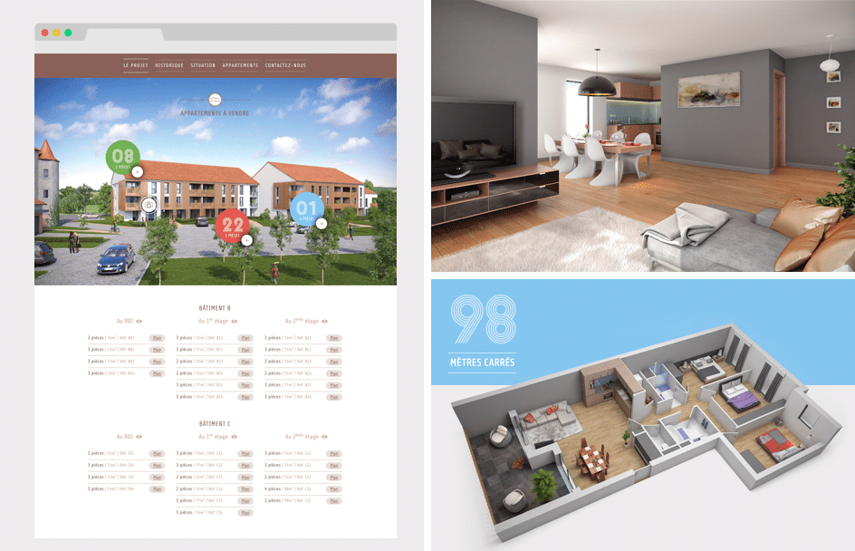 Ces différentes vues 3D ont été utilisées sur de nombreux supports de communication : publicités, site internet, brochure, etc.