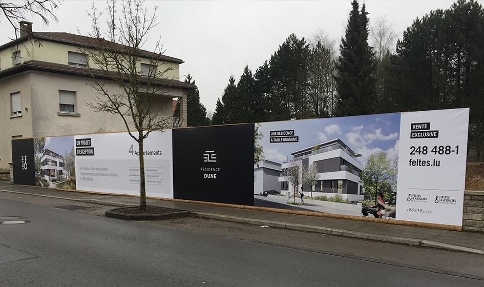 D’autres supports de communication ont été réalisés pour ce projet tel une palissade de chantier par exemple