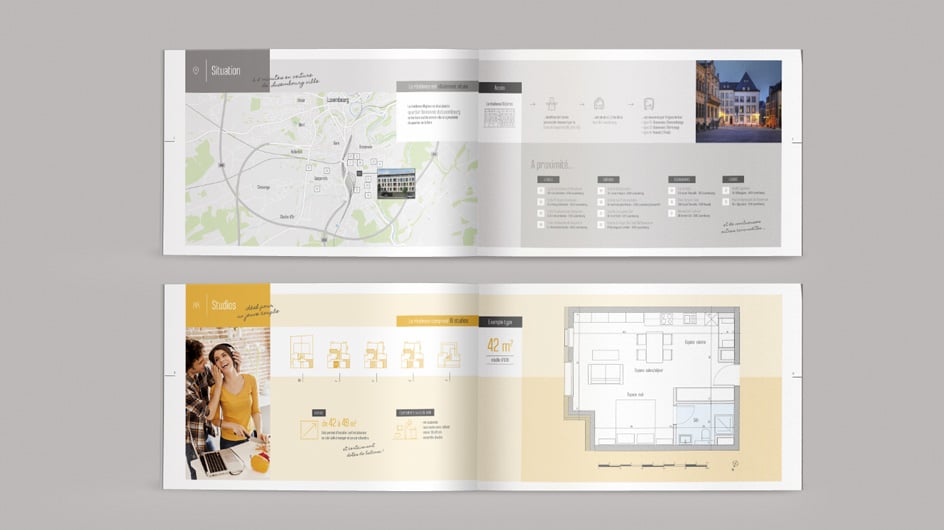 Afin d’assurer la promotion de cette résidence, nous avons commencé par créer un véritable univers graphique autour de ce projet.