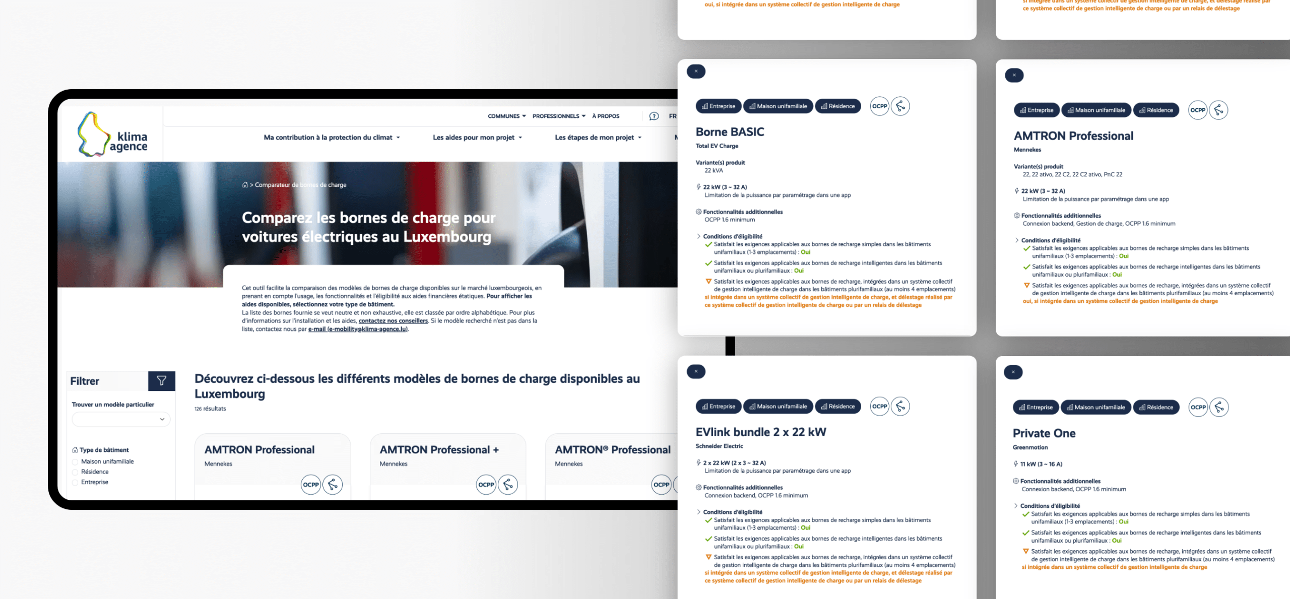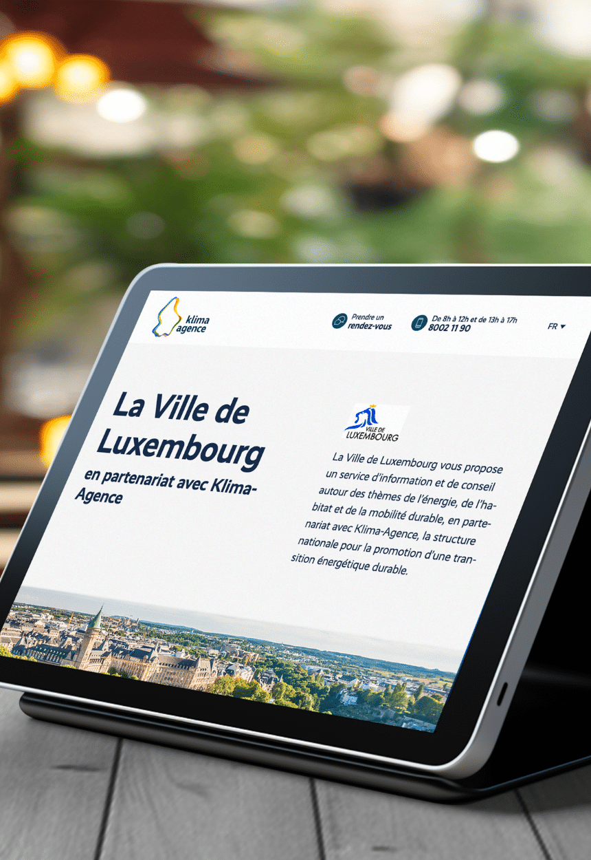 Notre collaboration avec Klima Agence s’est concentrée sur le développement d’une communication durable et accessible. Nous avons créé une charte graphique 100% accessible, veillant à ce que chaque élément soit intuitif et inclusif. Le site web “Klimapakt fir Betriber” est un autre exemple de notre engagement, avec une accessibilité de 81,9 % et une conception faible en émissions de carbone, soulignant notre l’engagement du client pour la décarbonation. Par ailleurs, nous avons réalisé l’habillage de véhicules et d’autres projets dans le respect de ces principes. Cette collaboration souligne notre capacité à allier créativité, durabilité et accessibilité dans nos réalisations.