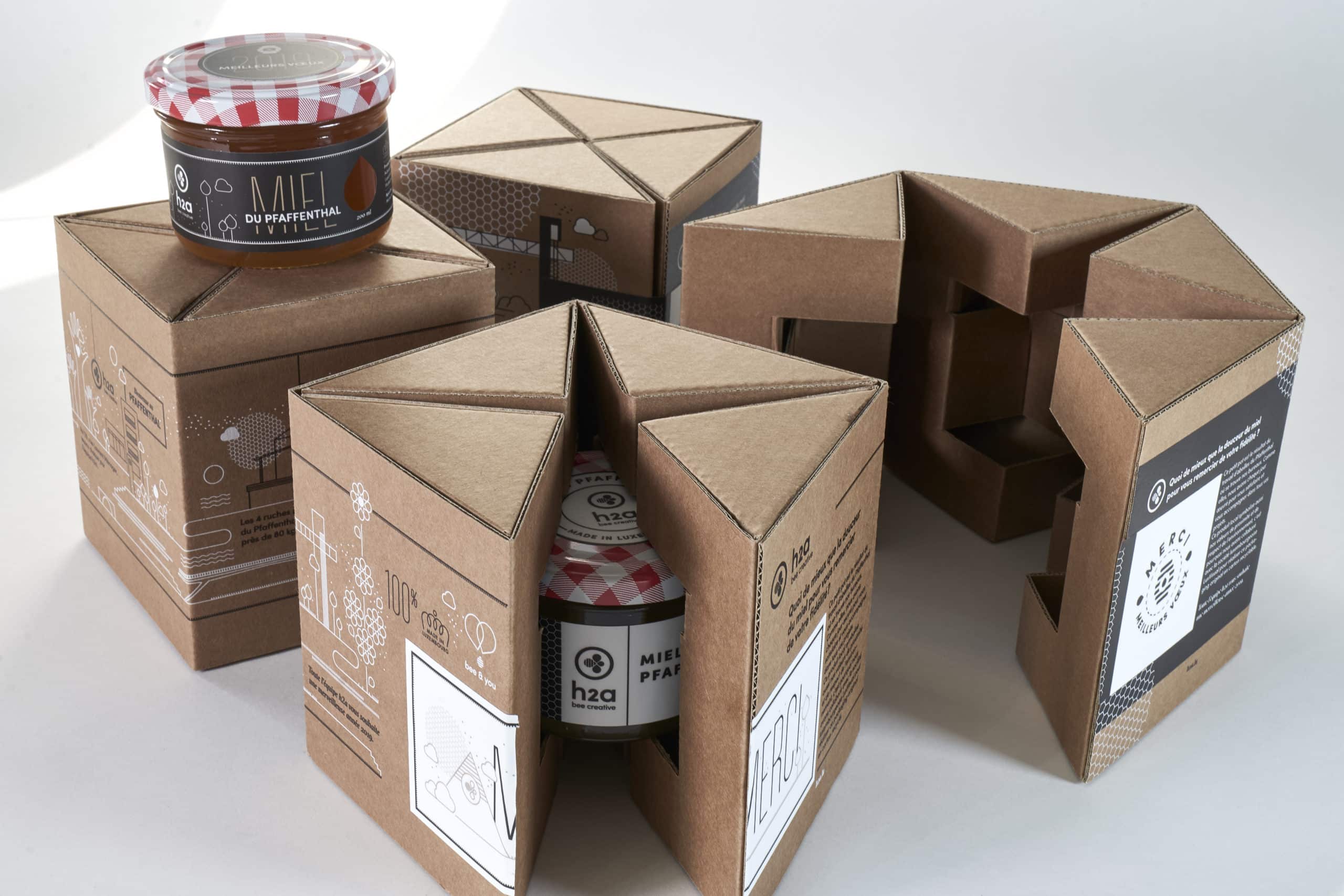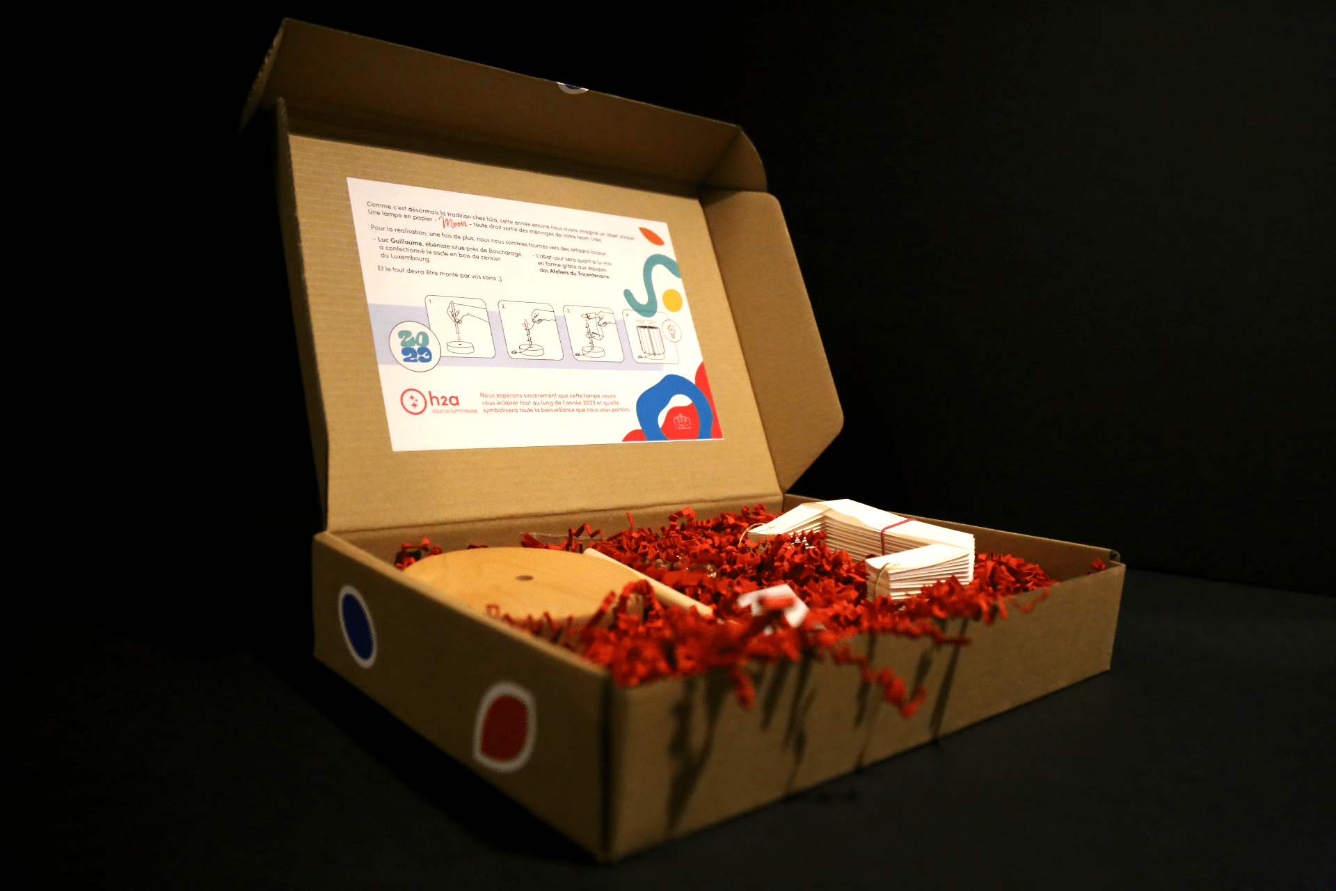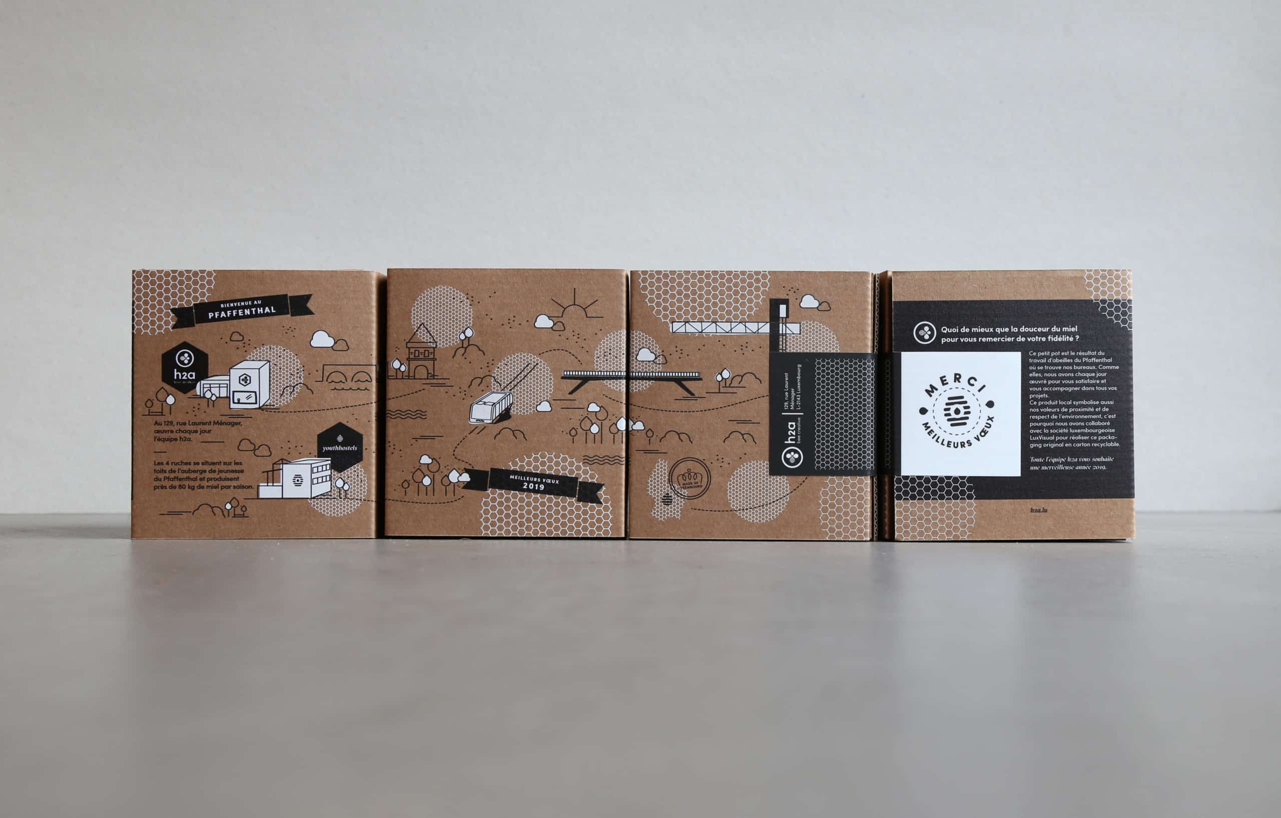 Depuis 2018, notre agence réalise l’exercice de créer un packaging unique, valorisant le savoir-faire local. Imaginés par nos équipes et concrétisés au Luxembourg avec l’aide d’artisans locaux, ces objets reflètent notre engagement envers le savoir-faire et l’authenticité régionale. Notre portfolio comprend une variété d’objets, tels qu’une lampe, du miel, du cidre, de la bière, un pot de fleur ou encore une bougie. Chaque objet étant le fruit d’une collaboration étroite avec des créateurs et artisans locaux. Cette démarche souligne notre amour du travail bien fait et notre désir de mettre en lumière le talent artisanal luxembourgeois à travers des packagings qui racontent une histoire et témoignent de notre créativité.