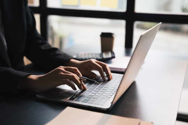 Personne tapant sur un ordinateur portable dans un environnement de travail
