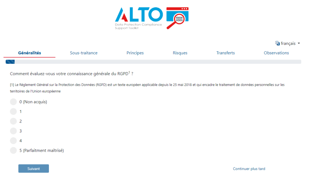 ALTO : un outil d’auto-évaluation simple et gratuit permettant aux PME établies sur le territoire du Grand-Duché de Luxembourg d’intégrer les obligations du Règlement Générale sur la Protection des Données dans le cadre de leurs activités.