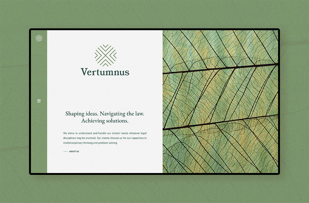 Vertumnus est le dieu romain des saisons et notre client a choisi ce nom afin d’évoquer la qualité du travail de son équipe au service d’une clientèle exigeante. L’identité visuelle créée se devait de refléter ce temps qui passe et le positionnement haut de gamme de cette nouvelle étude.